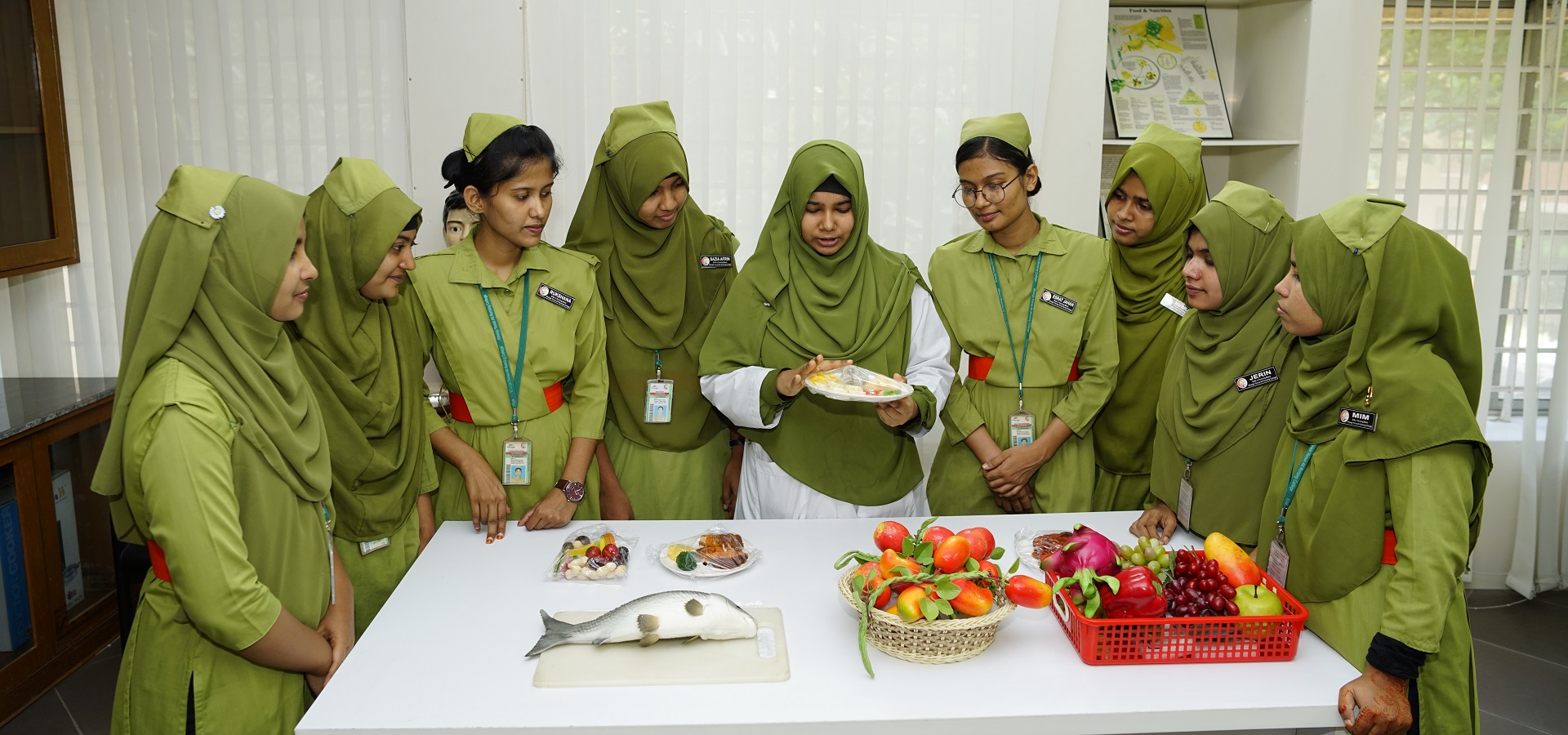 Modern and well equipped 7 (seven) practical laboratories are located in the first floor of the college building. A large well-equipped demonstration practical laboratory.